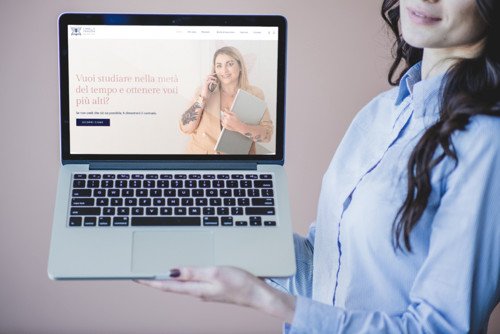 Brand identity completa con logo, palette e template social. Realizzazione del sito web ufficiale e di materiali digitali personalizzati, tra cui guide e PDF venduti come risorse formative. Creato anche uno study planner su misura e un percorso di formazione social dedicato per supportare la crescita del suo brand.
